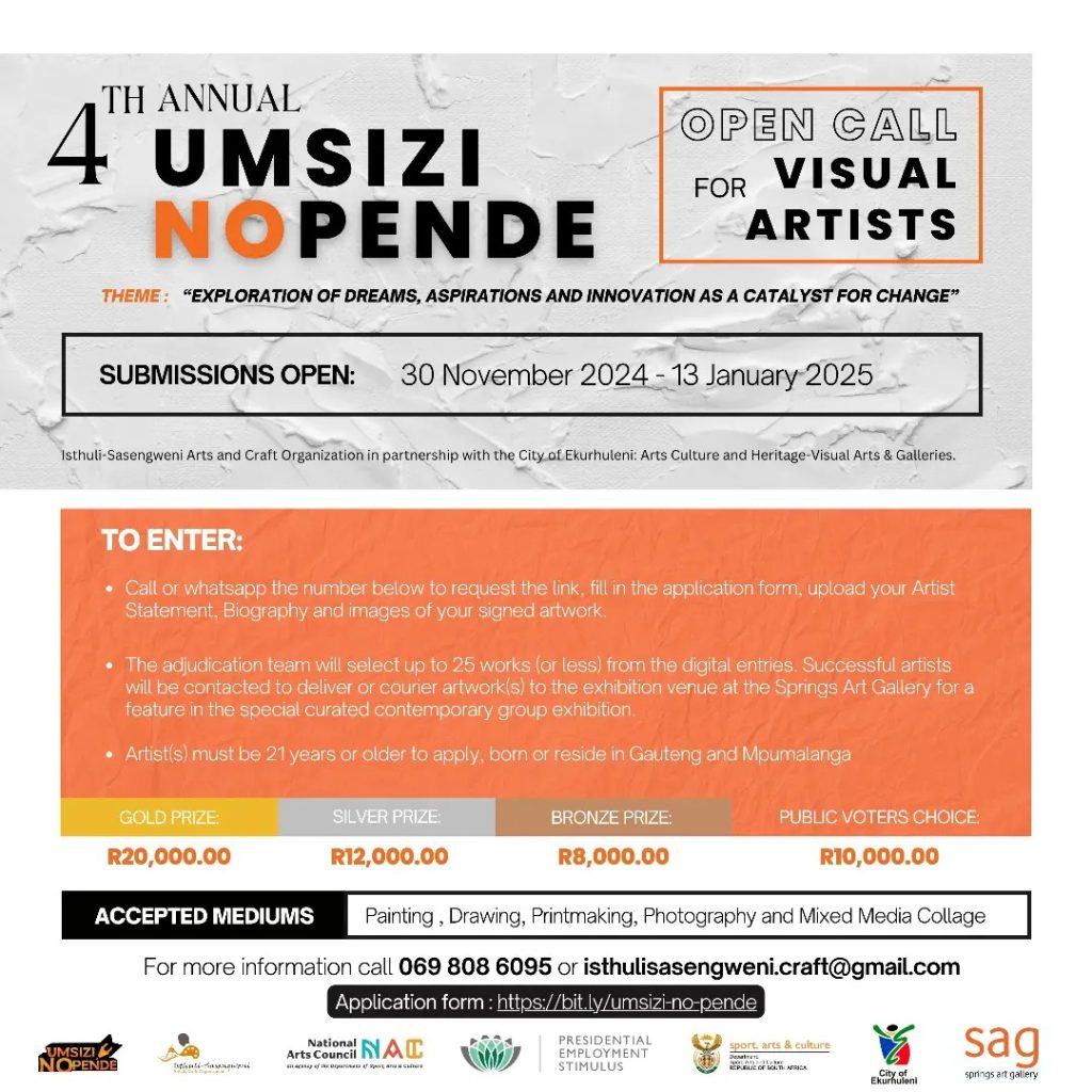 • National Exposure: Selected artworks will be showcased in the Umsizi Nopende National Visual Art Programme.