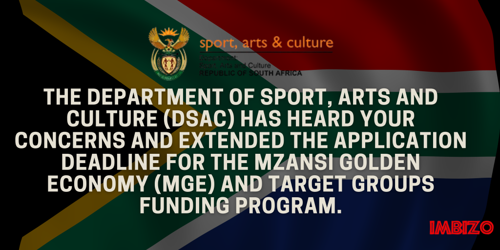 Attention all South African creatives! The Department of Sport, Arts and Culture (DSAC) has heard your concerns and extended the application deadline for the Mzansi Golden Economy (MGE) and Target Groups funding program.