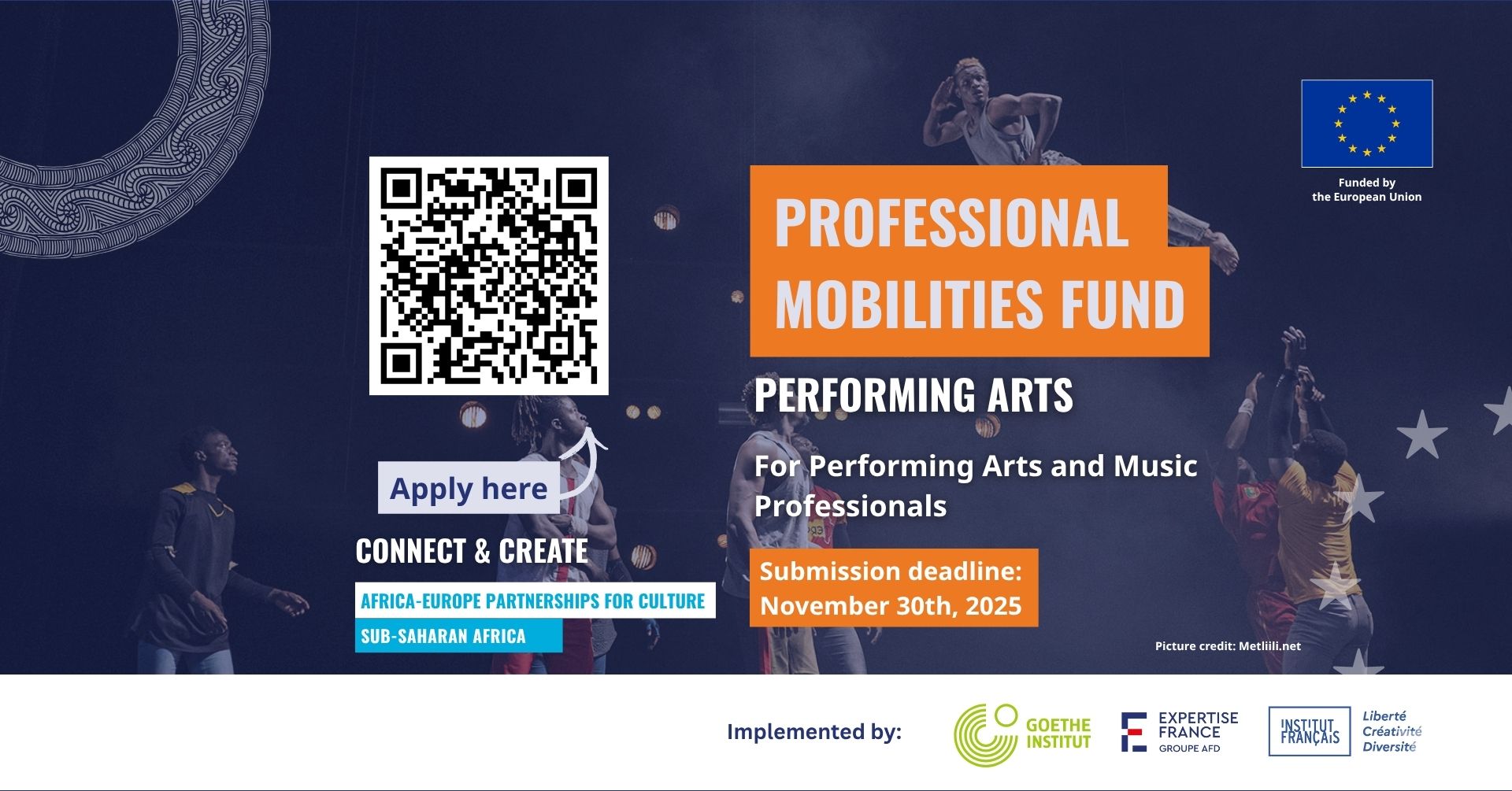 Funded by the European Union and implemented by the Goethe-Institut, Expertise France, and the Institut français, this programme is designed to bring fairness, sustainability, and true collaboration to the cultural relationship between Sub-Saharan Africa and the European Union. It is part of the Africa–Europe Partnerships for Culture, with a clear focus on youth, emerging artistic scenes, and cultural diversity.