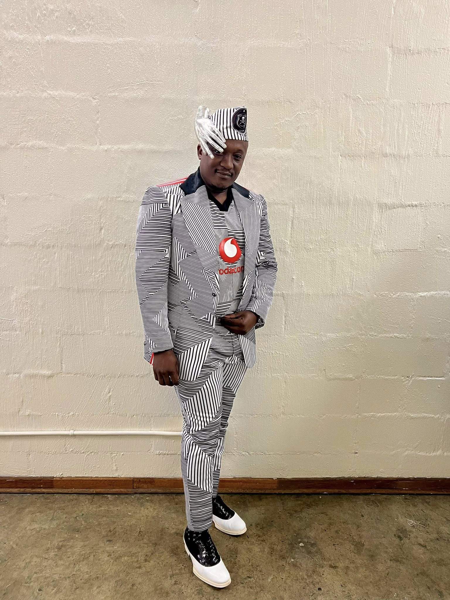 While the football action kept fans on the edge of their seats, the atmosphere around the stadium showcased another kind of talent, style, confidence, and individuality. Among the many supporters dressed to impress, MrSir Nkosi stood out with a look that blended intelligence, bold fashion choices, and creative flair. His outfit was more than just clothing; it was a statement about how fashion can exist confidently within spaces like sport and entertainment.